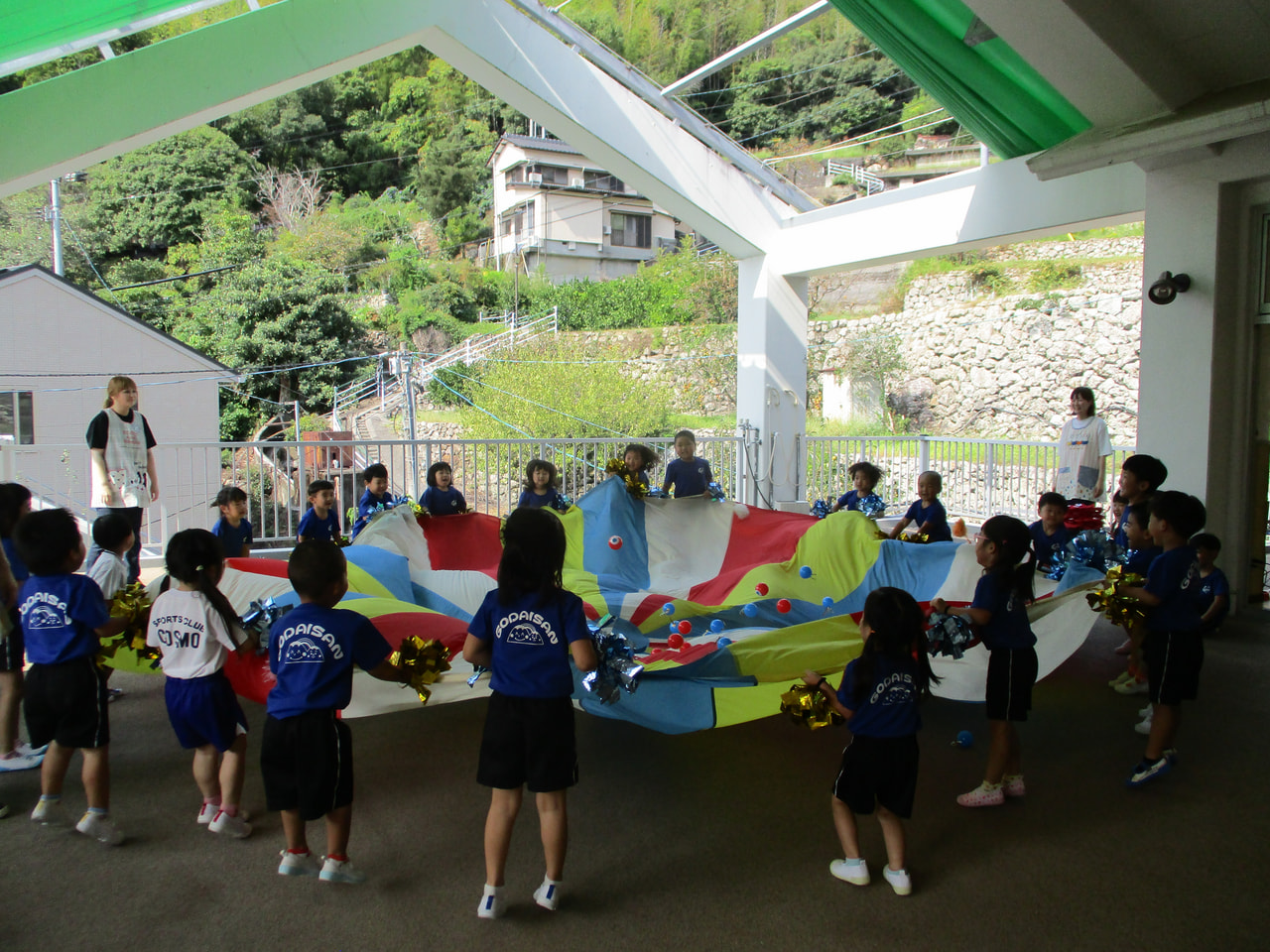 年長組さんがバルーンのやり方を優しく年少児さんに教えてくれる姿もあり、とても微笑ましかったです♪