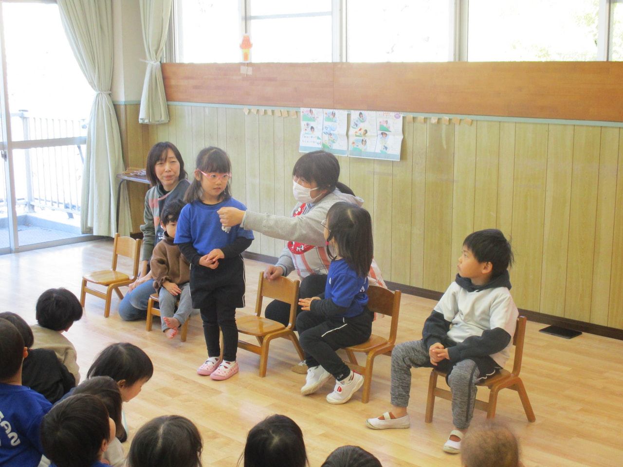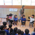 干支のお話のペープサートを見たあとは、発表会の出し物を見せ合い、それぞれのクラスが元気いっぱい発表していました。