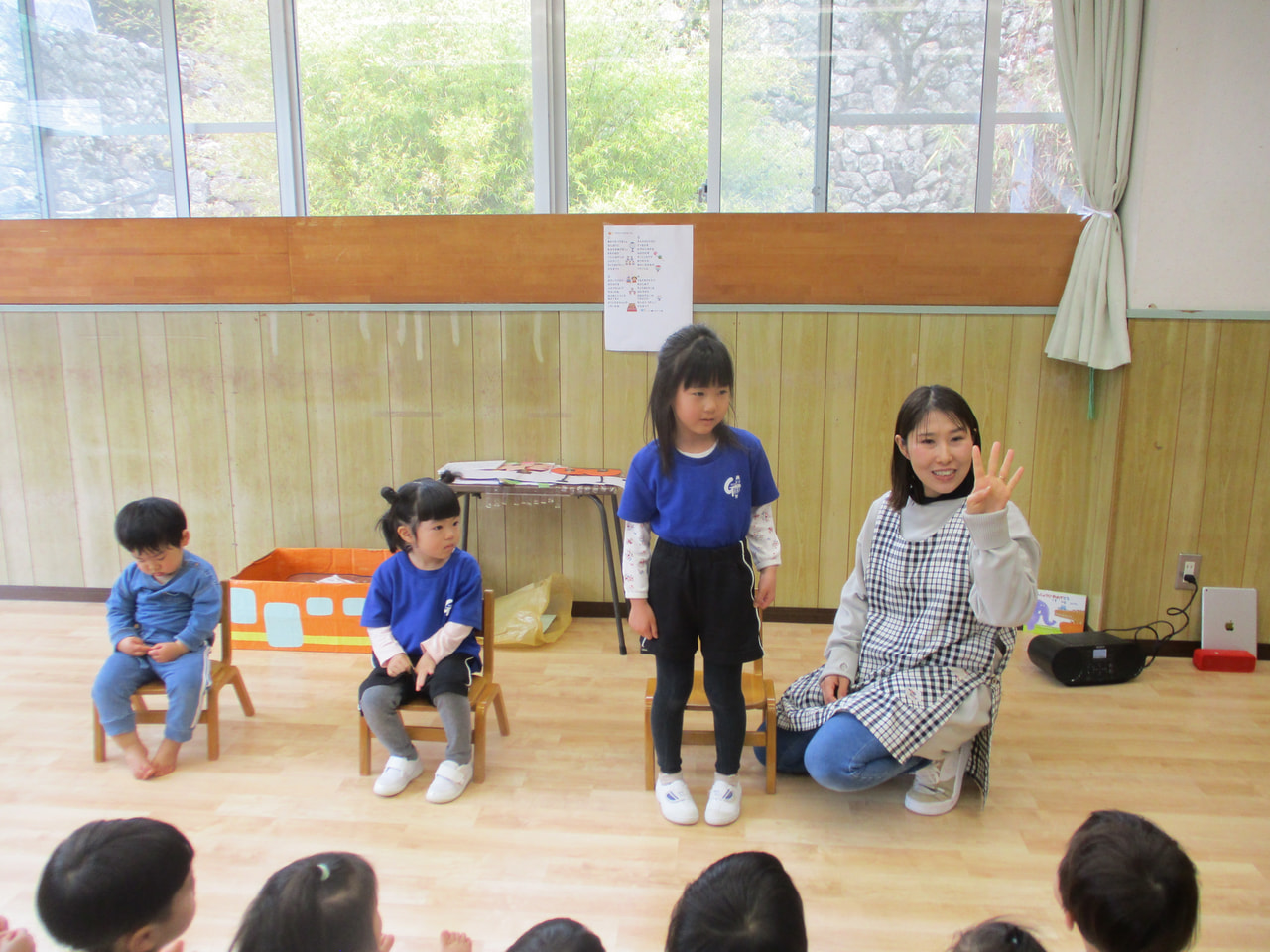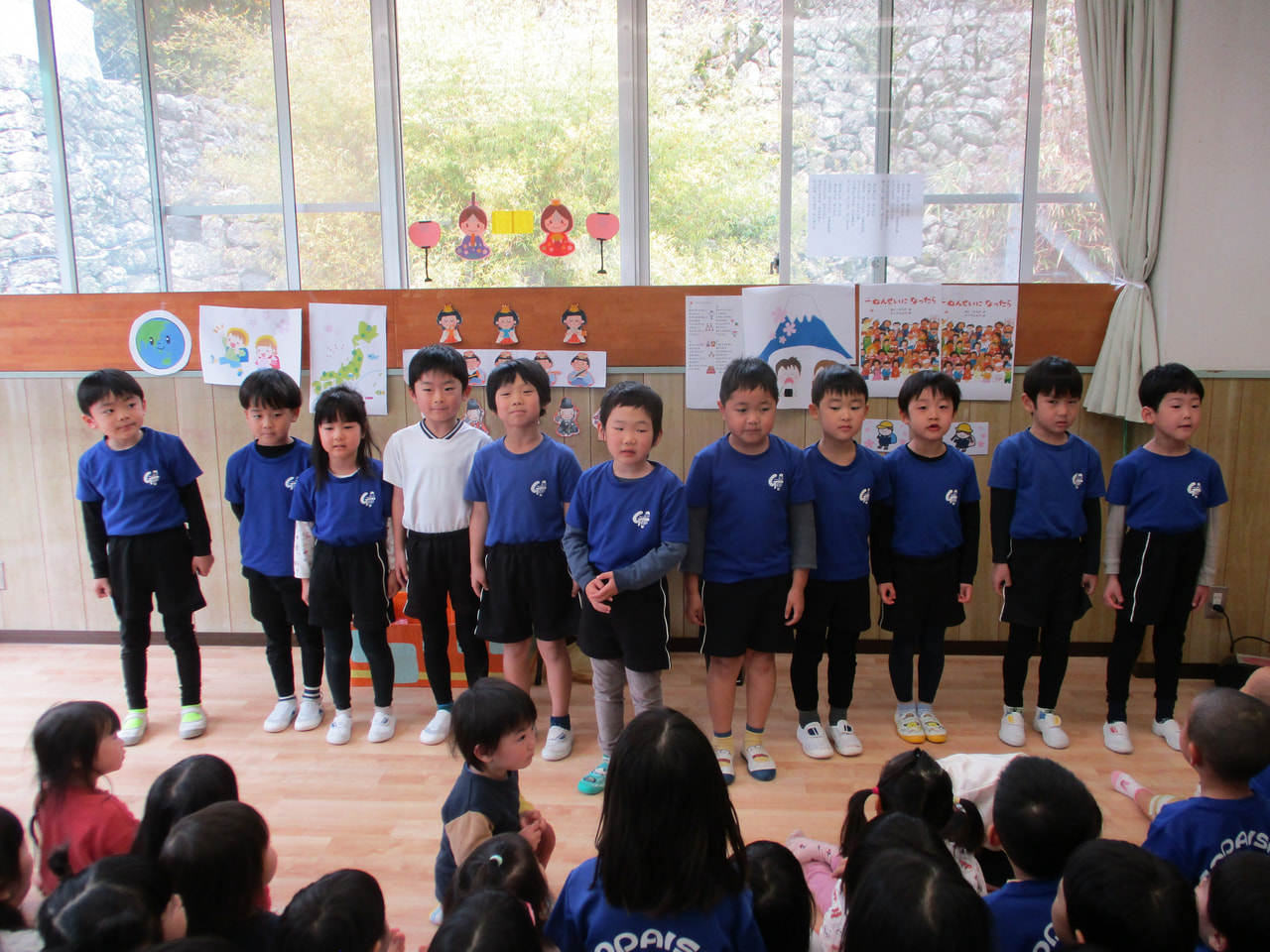 そして、もうすぐ卒園を迎える年長組さんが園歌を歌ってくれました。