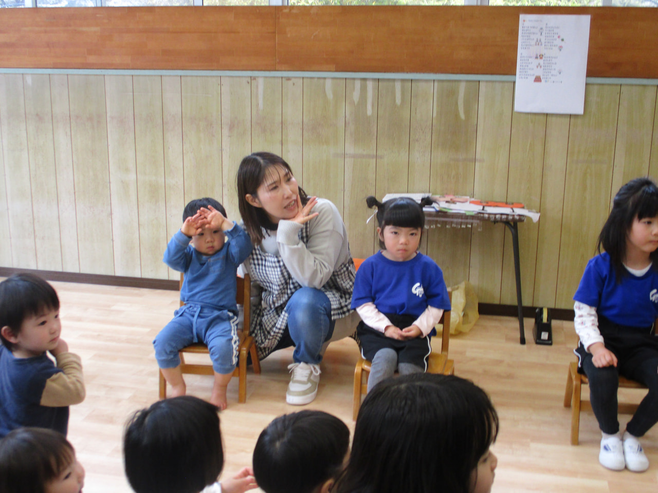 やさしくて少し頼もしく感じられる歌声に、小さいクラスのお友だちもじっと耳を傾けていました。